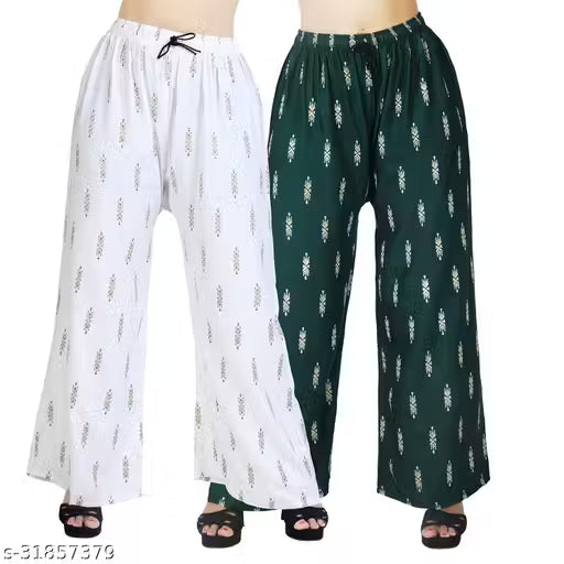 Palazzo pants With Skin Print Bottom Wear For Women & Girls Rayon 140 Gsm Trending Colour White Black Maroon Navy Blue Mustard Pink Red Bottel Green Grey Pack Of 2